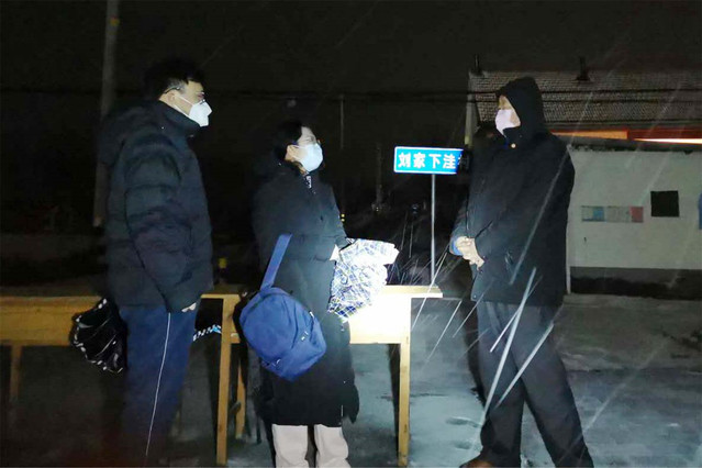 新冠疫情防控紧张时期,雪夜到村口执勤点查看