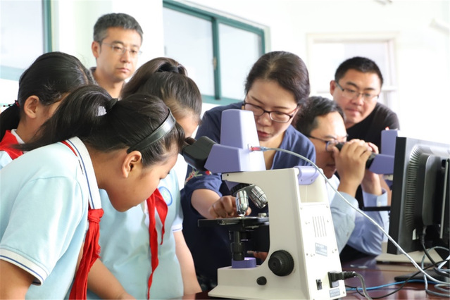学校捐赠的数字显微镜为学生的科普课堂增色