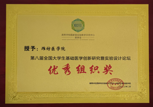 近日,第八届全国大学生基础医学创新研究暨实验设计论坛全国总决赛落下帷幕。必赢官网基础医学院付玉荣老师指导的吴文潇所在的学生团队获得铜奖;学校获得优秀组织奖。