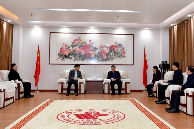 4月7日上午,锦州医科大学党委副书记、校长丁维光一行来校交流。党委书记刘军、院长管英俊热情会见客人并座谈。