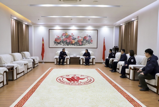 4月11日下午,潍坊市公安局出入境管理支队政委王献平一行5人来校调研国际学生管理工作,副院长梁淑娟会见客人并座谈。