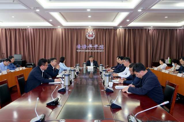 刘军在会上指出,这次主题教育意义重大、事关全局,各级党组织和党员、干部要将开展主题教育作为一项重大的政治任务,牢牢把握主题教育的总要求和根本任务,确保主题教育走深走实。刘军就认真做好主题教育工作提出要求:一要着力在凝心铸魂筑牢根本上争先锋、作表率。要强化学习研讨,坚持理论中心组示范学、班子成员带头学、读书班专题深入学、党员干部全员学、党性实践融合学,在以学铸魂、以学增智、以学正风、以学促干上下功夫见实效。二要着力在锤炼品格强化忠诚上争先锋、作表率。要聚焦理论学习、政治素质、能力本领、担当作为、工作作风、廉洁自律六个方面,建立问题清单、整改台账、抓好整改,切实增强忠诚核心、拥护核心、维护核心、捍卫核心的政治自觉、思想自觉、行动自觉,夯实坚定拥护“两个确立”、坚决做到“两个维护”的思想根基。三要着力在实干担当促进发展上争先锋、作表率。要紧紧围绕高质量发展主题,紧紧围绕省委16个调研重点,紧紧围绕学校“1128”发展思路和两大攻坚任务,大兴调查研究之风,以深化调查研究推动解决发展难题,以推动高质量发展检验主题教育成效。四要着力在践行宗旨为民造福上争先锋、作表率。强化依靠师生、服务师生的宗旨意识,维护好、发展好、实现好潍医师生最根本利益。要坚持开门搞教育,深入开展“我为发展献良策、解难题、建新功”系列活动,推动实施思想大解放、理论大学习、民生大调研、作风大提升、发展大提速。五要着力在廉洁奉公树立新风上争先锋、作表率。要持续深化全面从严治党工工作,一体推进主题教育检视整改和纪检监察干部教育整顿、干部队伍专项教育整顿工作,把主题教育完成情况纳入政治巡察、党建考核、班子考核、述职评议重要内容。