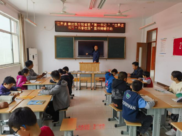 潍坊医学院省派第一书记驻村以来,高度重视驻地教育事业发展,迅速与有关学校建立了支部共建和结对帮扶关系,组织了文化下乡支教志愿活动、爱心捐赠等多次富有成效的共建活动,通过自筹资金购置、组织同事朋友募捐、爱心企业捐赠等形式,先后为驻地多所学校和幼儿园捐赠了共计近5万元的图书、文具、玩具,并于2022年世界读书日成功举办了马营社区“书香进我家”活动,在派驻地营造了全民学习的良好环境和浓厚的文化氛围。