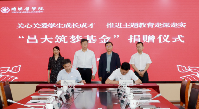 管英俊向昌大建设集团致以崇高敬意和诚挚感谢。她指出,这次设立“昌大筑梦基金”,是社会捐资助学的体现,更是学校主题教育期间开展的润物无声的思政课。昌大建设集团关爱青年成长、赋能人才培养、支持学校发展,充分体现了企业热心公益的社会责任、教育情怀和使命担当。学校将在潍坊昌大建设集团等爱心企业和社会各界的大力支持下,牢记初心使命,展现责任担当,努力实现高质量内涵式发展,为国家和社会输送更多优秀人才,为健康中国战略作出积极贡献。