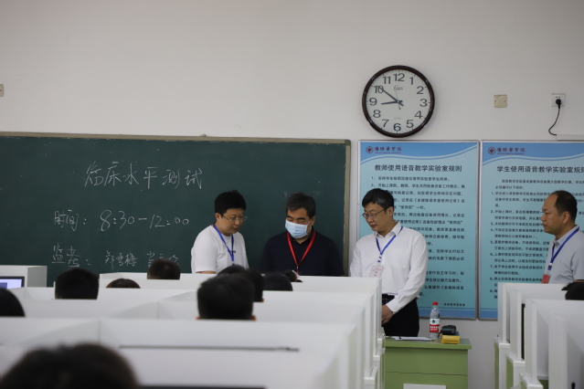 5月19日,国家医学考试中心王县成主任一行3人来必赢官网巡考调研临床医学专业(本科)水平测试(下称“水平测试”)工作。党委书记刘军陪同巡视考场,院长管英俊、副院长卢国华、副院长王承高会见座谈,副院长张忠、成敏出席调研座谈,学校相关职能部门、附属医院负责人及考务管理人员、教师代表、学生代表参加调研。