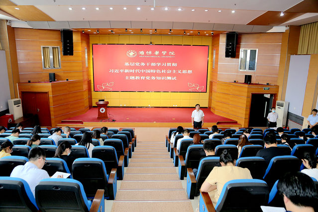 为进一步学深悟透用好习近平新时代中国特色社会主义思想,常态化推动主题教育理论学习入脑入心,提升基层党务干部专业能力素质,6月5日,学校主题教育领导小组办公室举行基层党务干部主题教育及党务知识测试。党委委员、组织部部长王世群现场督导,各二级学院专职组织员、学生党支部书记、辅导员、教师党员代表等参加知识测试。