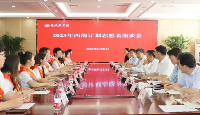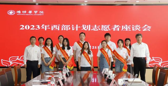 座谈会上,校党委书记刘军为西部计划志愿者颁发特殊补助金,向全体志愿者选择积极响应祖国号召、志愿服务基层的行为给予了高度赞赏,并提出了三点希望:希望同学们怀抱梦想、脚踏实地,做一心向党的热血青年,用爱的目光去发现西部之美。把琐碎繁杂的工作当做“赤子之心”的磨练石,用脚步丈量祖国大地,到基层奉献青春。希望同学们立足岗位、勇于面对,做不负人民的担当青年,用知识的力量去建设西部之美。要脚踏实地,不畏艰苦,把工作做好、做实、做细、做精,成为群众可以依靠和信赖的人。希望同学们加强学习、练就本领,做新时代奋进路上的追梦人,用青春去点燃西部之光。学好党和人民需要的知识,在实践中提高能力,练就过硬本领,把学习作为一种追求、一种爱好、一种健康的生活方式。刘军勉励同学们,要弘扬“自强不息、锐意进取”潍医精神,用爱和力量在西部书写靓丽的青春答卷。