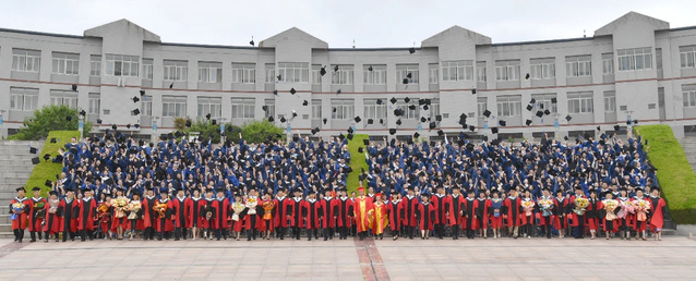 毕业典礼暨学位授予仪式结束后,与会的学校党政领导班子成员、研究生导师代表和全体毕业生在中和广场合影留念。