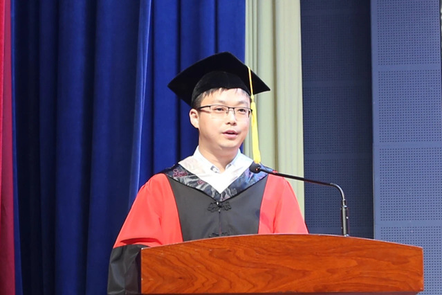 导师代表陈钟鸣教授、毕业生家属代表李恒铸、毕业代表王彩同学分别在典礼上发言。