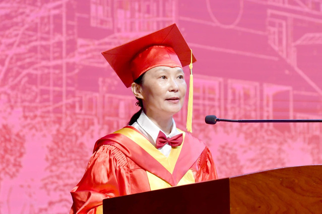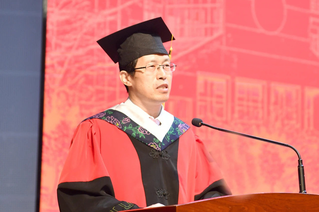 管英俊作题为《乐道济世 奔赴未来》的讲话,向即将开启人生新征程的833名博士、硕士研究生同学致以热烈祝贺;向悉心指导的研究生导师、辛勤培育的父母、关心支持的亲友们致以衷心感谢。