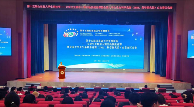 刘军在致辞中向出席活动的领导和参赛师生表示热烈欢迎,他简要介绍了学校的基本情况和近年发展成绩。他指出,在深入开展学习贯彻习近平新时代中国特色社会主义思想主题教育之际,这次竞赛是山东省生命科学领域各专业学会对学校的信任,也是对学校生物学科和专业发展的肯定和支持。本次竞赛是全国、全省高校生命科学领域的顶级赛事,列入教育部中国高教学会竞赛排行榜,含金量高,学生参与面大,是对各高校专业教育质量和办学育人水平的全面检验,对深化教育教学改革、培养优秀应用型创新人才具有重要意义。大赛为各高校搭建了学习交流、切磋技能的平台,营造了重视实践、倡导创新的发展氛围。学校将以此次大赛为契机,同全省生物学各专业学会、各位专家和兄弟院校进行更广泛地合作、更深度的协同,不断开创科技创新、产教融合、成果转化的新局面,以强有力的人才保障和智力支持更好助推“健康中国”战略。