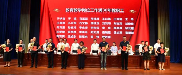 学校对山东省第十届高校青年教师教学比赛、山东省高校教师教学创新大赛获奖人员,学校第七届教学名师,学校实践教学先进集体及个人代表,以及学校师德标兵、优秀教师、优秀辅导员、先进工作者和在教育教学岗位工作满30年的教职工代表进行了表彰。