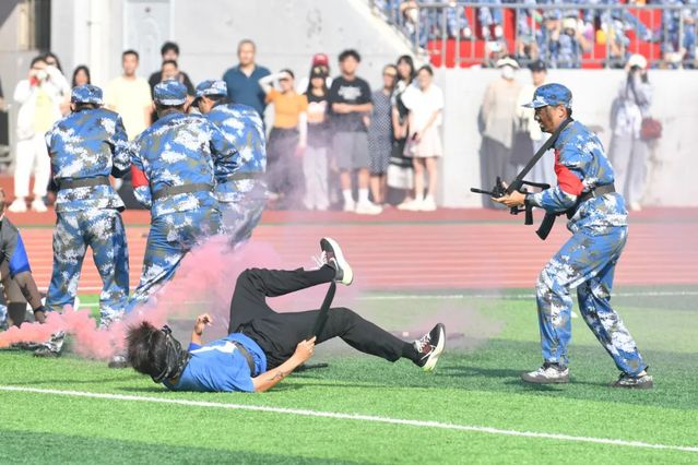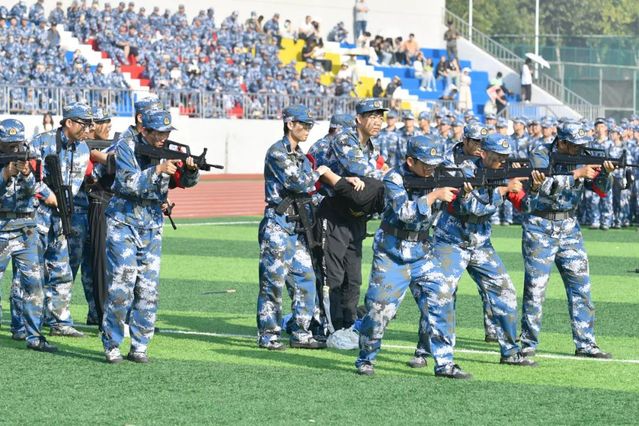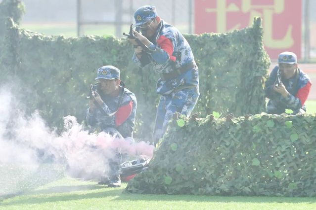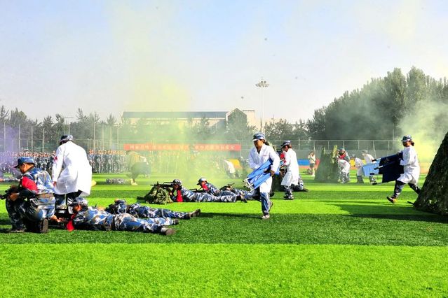 特训科目演练环节中,杀气十足的刺刀拼刺、干练矫健的女子擒敌、气势磅礴的战斗运动、紧张激烈的综合演练、战场紧急救护等,以实际行动展示了军训的丰硕成果。在这场汗水浸润的军事训练中,同学们彼此扶持、互相激励,不畏困难、迎难而上,学习军人的钢铁意志、优良作风,用良好风貌诠释了青春的含义,以实际行动践行了“自强不息、锐意进取”潍医精神,用优秀的训练技能诠释了“挺膺担当,强国有我”的铮铮誓言。