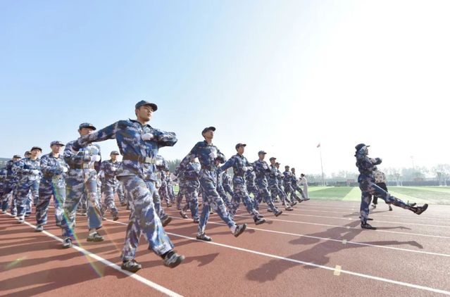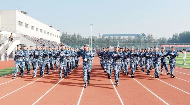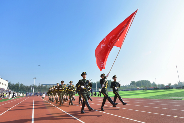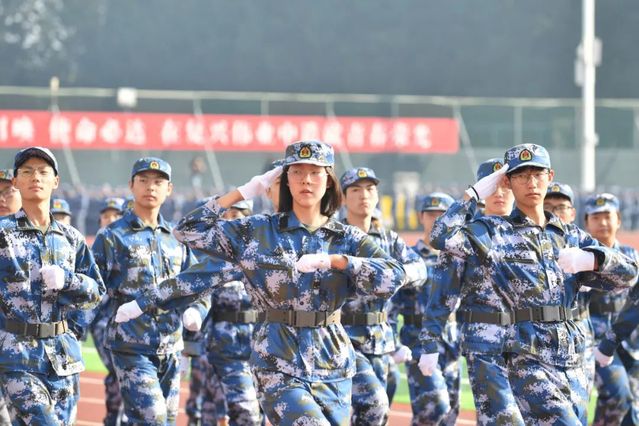 伴随着《分列式进行曲》的铿锵节奏,迎军旗、标兵就位、分列式展演正式开始,3300余名2023级新生面容刚毅、精神抖擞,喊着嘹亮的口号、迈着矫健的步伐,依次正步走过主席台接受检阅,目光坚定、动作规范、整齐有序、英姿飒爽。