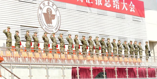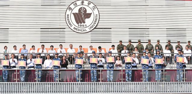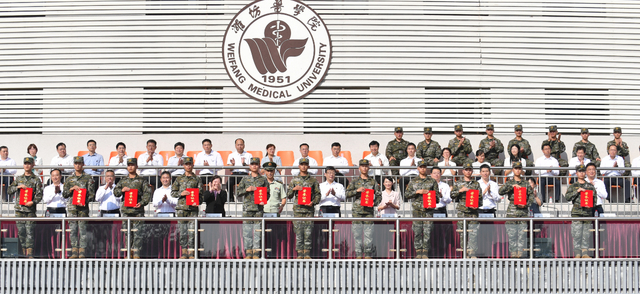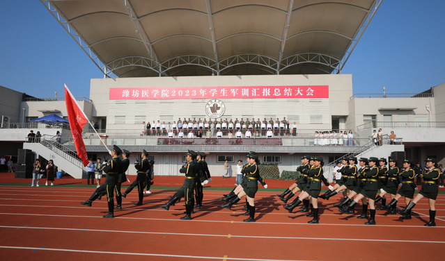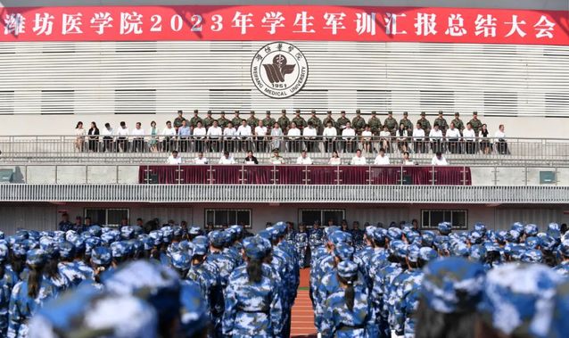 沙场秋点兵,苦训砺芳华。9月16日上午,潍坊医学院浮烟山校区体育场歌声嘹亮、口号震天,2023年学生军训汇报总结大会在这里隆重举行。学校党政领导班子成员刘军、管英俊、王承高、梁淑娟、孔令军、张忠、成敏、田玉胜、王世群、刘汉波,武警潍坊支队副支队长刘鹏出席大会并为军训先进集体和个人颁奖。