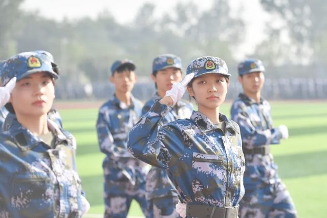 全体同学齐唱《强军战歌》,嘹亮的歌声为军训画上了圆满的句号。为期二十一天的军训,队列训练、条令学习、内务整理、格斗实训、集合拉练、教唱军歌、战场救护各项科目,为新生上好了“大学第一课”,为新生开启大学新生活奠定了坚实基础。