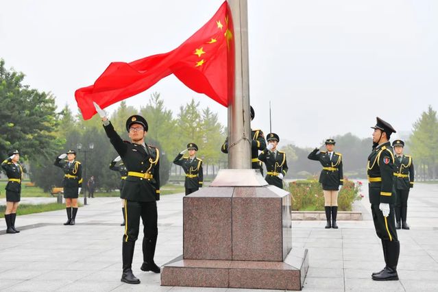 生逢新盛世,奋进正当时。上午7时,迎着第一缕晨光,升国旗仪式正式开始。国旗护卫队员以铿锵有力的正步步伐,走向升旗台,护送鲜艳的五星红旗入场。全体师生齐唱中华人民共和国国歌,向五星红旗行注目礼,鲜艳的五星红旗冉冉升起,歌声嘹亮,气氛昂扬,同心共祝伟大祖国繁荣昌盛。