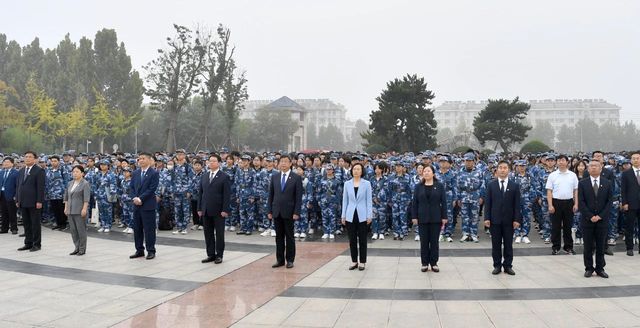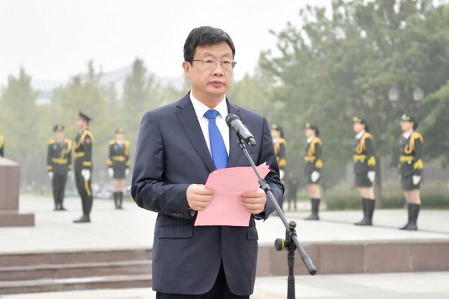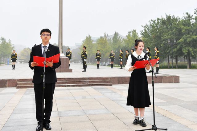 中秋佳节迎国庆,祝福声声举国欢。为庆祝新中国成立74周年,9月28日清晨,学校在泰和广场举行升国旗广场会暨新学期思政第一课,以庄严神圣的方式共同庆祝我们伟大祖国74周岁生日,抒发对伟大祖国的无比崇敬和热爱之情,学校党政领导班子成员刘军、卢国华、王承高、梁淑娟、孔令军、张忠、成敏、田玉胜、王世群出席活动。