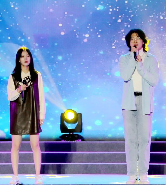 2023级新生辅导员、2023年新入职教师代表演唱了歌曲串烧《爱》《和你一样》《孤勇者》《我的未来不是梦》,为同学们献上了新学期的祝福,将晚会推向了高潮。