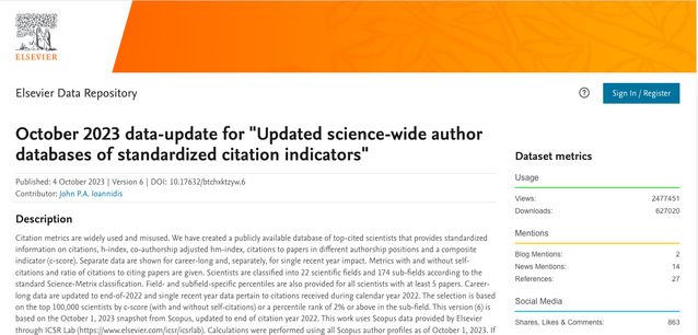 据悉,“全球前2%顶尖科学家”榜单基于全球权威的引文与索引数据库Scopus,依照科技工作者科研产出、Google Scholar Metrics期刊评分、H指数、成果被引、成果中作者排序位置等参数进行综合评估,遴选出排名前2%的科学家,分为22个领域和174个细分子领域,旨在提供一个科学家长期科研表现的衡量指标,更客观、更真实地反映科学家的影响力。