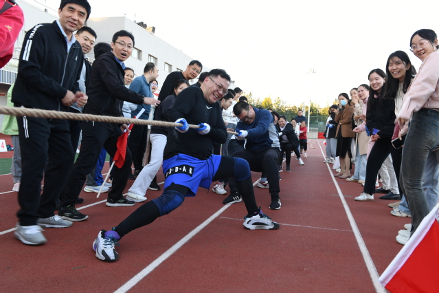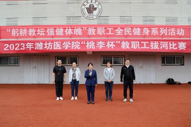 10月18日下午,“躬耕教坛 强健体魄”教职工全民健身系列活动启动仪式,暨2023年“桃李杯”教职工拔河比赛在浮烟山校区体育场举行。副院长成敏出席启动仪式。