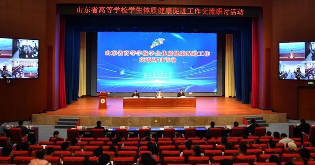 本次研讨活动由山东省教育厅主办、山东省学生体质健康促进中心协办、潍坊医学院承办,采取线上线下结合的方式,在潍坊医学院浮烟山校区文体活动中心报告厅设主会场,驻潍以外高校设分会场。省教育厅领导、有关处室负责同志,驻潍坊市高校分管负责同志,全省各高校体育学院(部)主要负责同志,学生体质健康数据管理和“大学生体质健康等级证书管理系统”技术人员,五所交流发言高校代表,省学生体质健康促进中心工作人员近300人现场参与活动;全省156所高校分管负责同志,教务处、学生工作处、体育学院(部)等相关部门负责同志和体育教师在各分会场线上参会。