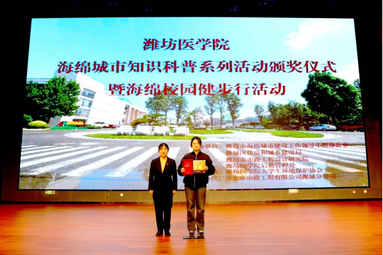 为深入践行习近平生态文明思想,引导广大师生体悟生态环保理念、培育节源资源意识,推动学校海绵校园建设继续深化、发挥示范效益。11月18日,学校在浮烟山校区举办了海绵城市知识科普系列活动颁奖仪式暨海绵校园健步行活动。副院长成敏,潍坊市住房和城乡建设局科技设计科科长孙凯、潍城区住房和城乡建设局副局长夏伯卿出席活动并为获奖同学颁奖。