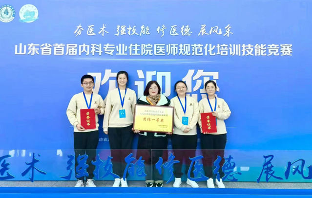 近日,山东省首届内科专业住院医师规范化培训技能竞赛在潍坊鲁台会展中心举办,附属医院(临床医学院)代表队、第一附属医院(潍坊市人民医院)代表队从全省33支参赛队伍中脱颖而出,双双获得全省团体总决赛一等奖。崔舒萍、李汶珊、李淑月、张景春、袁梦雪分别获得个人赛一二三等奖。