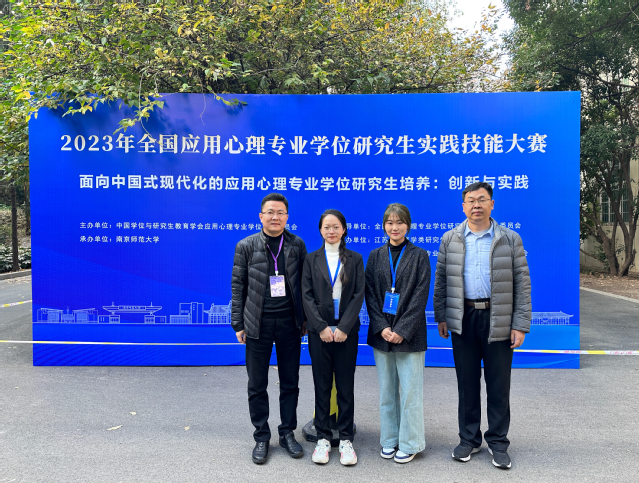 这是心理学院学生继首届全国应用心理专业学位实践技能大赛一等奖以来再次取得佳绩。学校始终重视对专业学位研究生科研创新能力和实践应用能力的培养,在课程设计、竞赛设置以及实习见习等方面不断强调学生知识运用和技能提升的重要性,坚持推进该理念的贯彻实施,不断提高对专业学位研究生的培养要求,促进人才培养质量的持续提升。