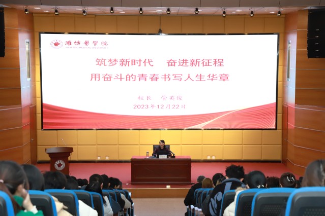 管英俊以《筑梦新时代奋进新征程用奋斗的青春书写人生华章》为题,结合党的二十大报告,以广大青年在党的领导下,在科技攻关、疫情防控、为国戍边等方面所做贡献引导青年学子进一步认识到新时代中国青年的使命担当。报告会上,她与同学们分享了学校72年的办学历程和优秀校友用心守护人民健康的感人事迹,激励大家守乐道初心、担济世使命,赓续“自强不息,锐意进取”的潍医精神。管英俊对全校团员和青年提出了三点期望:希望大家做理想高远、心怀家国的新时代好青年,做本领高强、业务过硬的新时代好青年,做开拓进取、敢想敢为的新时代好青年,努力成长为政治合格、信念坚定、行动有力青年马克思主义者。