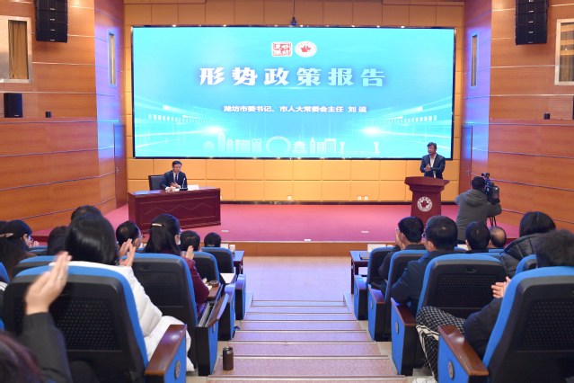 12月26日,市委书记、市人大常委会主任刘运到必赢官网作形势政策报告,宣讲中央经济工作会议精神,介绍潍坊经济社会发展情况,勉励青年学子持之以恒奋斗、脚踏实地奉献,做眼里有光、心中有梦、脚下有路的新时代好青年。党委书记刘军主持报告会。潍坊市委副秘书长李志林,潍坊市委教育工委常务副书记、市教育局党组书记、局长杜全平,学校全体校领导出席报告会。