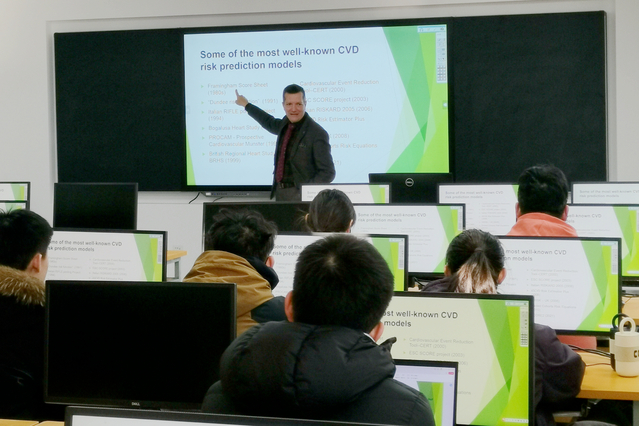 作为公共卫生领域国际知名专家,Dimosthenes Panagiotakos还专门为必赢官网学生讲授了国际课程,并开展学科座谈。代表团一行还参观了学校校史馆、文体活动中心和实验实训中心。