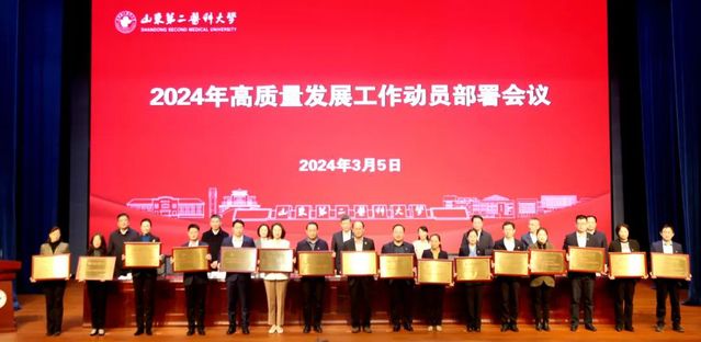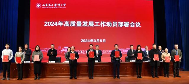 3月5日新学期伊始,学校在浮烟山校区文体活动中心报告厅召开2024年高质量发展工作动员部署会议,总结表彰学校2023年度考核工作先进集体和个人,对2024年度高质量发展工作进行动员部署。党委书记刘军作动员讲话,校长管英俊总结安排部署工作,副校长卢国华宣读表彰决定。会议由副校长王承高主持。党政领导班子成员孔令军、田玉胜、王世群、刘汉波出席动员大会。