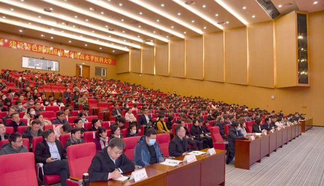 刘军强调,2024年是学校开启新办学篇章的开局之年,是实现第四次党代会和“十四五”规划目标任务的关键之年,更是聚焦博士培养工作的攻坚之年。进入新的发展阶段,学校发展目标围绕“更高水平、更具特色、更有作为”三个关键词,从四个方面做好2024年重点工作任务。一是突出党建引领,全力推进一融双高。要提高理论武装水平和政治站位,重视年轻干部和专业干部队伍建设,推进全面从严治党向纵深发展,推动党建与学校事业发展深度融合。二是突出学科建设,聚力推进博士人才培养。要继续优化资源配置、凝练学科方向、加强沟通协作,强化有组织的学科建设,以高水平学科建设带动高水平大学建设。三是突出内涵发展,合力提升硬核实力。要构建高水平人才培养体系,打造有竞争力的一流师资队伍,强化有组织科研提升科技创新能力,聚力推进附属医院高质量发展。四是突出改革创新,努力释放办学活力。要全面释放二级学院办学活力,开门办学提升资源获取能力,推进教育数字化赋能高质量发展。