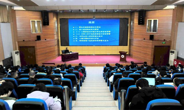 赵富才以“沟通从‘心’开始——辅导员谈心谈话技术及心理危机的预警”为题,以新学期大学生心理健康普查为切入点,结合学生工作实践,分析了谈心谈话的基本技术和操作要求,并通过典型案例介绍学生心理危机的识别与预警方法,阐述了典型心理危机处置的要点策略。讲座内容丰富详实、指导性强,贴近学生工作实际情况,为今后学生心理问题的预防、干预及处理提供了有益参考。