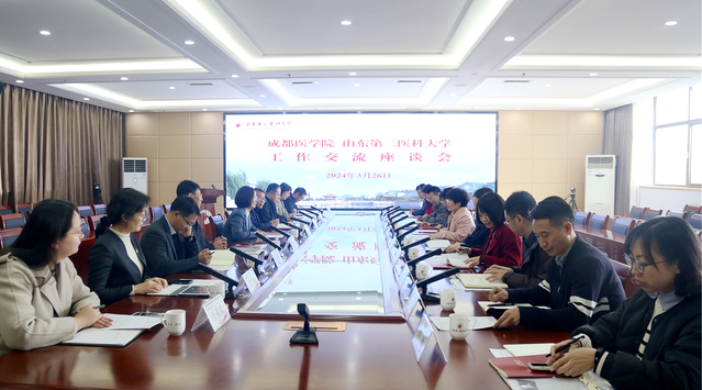 3月26日,成都医学院副院长代敏一行来校考察交流,学校副校长卢国华,党委委员、宣传部(教师工作部)部长田玉胜会见客人并座谈。