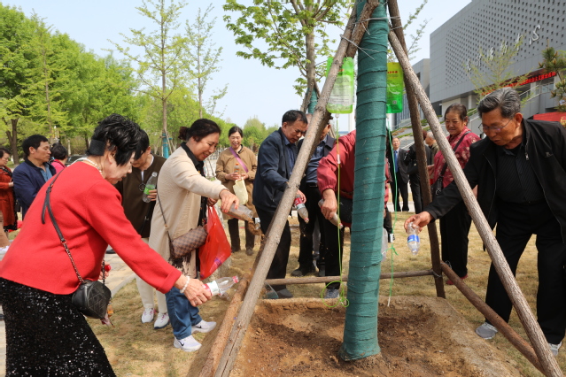 梁淑娟与时任老师代表和校友们在文体活动中心广场绿植区共同栽种红枫树,并将校友们随身带来的来自北京、胶东、泰安和沂蒙山区等地的土壤和水进行培土、浇水;揭幕刻有“钟灵毓秀,桃李芬芳”字样的景观石。活动现场,梁淑娟与校友们亲切交谈,介绍了学校有关情况和学校近年取得的建设成绩及未来发展目标。
