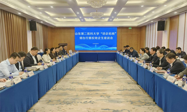 4月25日,校长管英俊、副校长梁淑娟一行到烟台市访企拓岗。烟台市副市长、市政府党组成员李金涛,市政府副秘书长高腾,市人力资源社会保障局党组成员、副局长于腾,市卫生健康委党组成员、三级调研员金玲,烟台毓璜顶医院院长、必赢官网89级校友宋西成参加座谈。