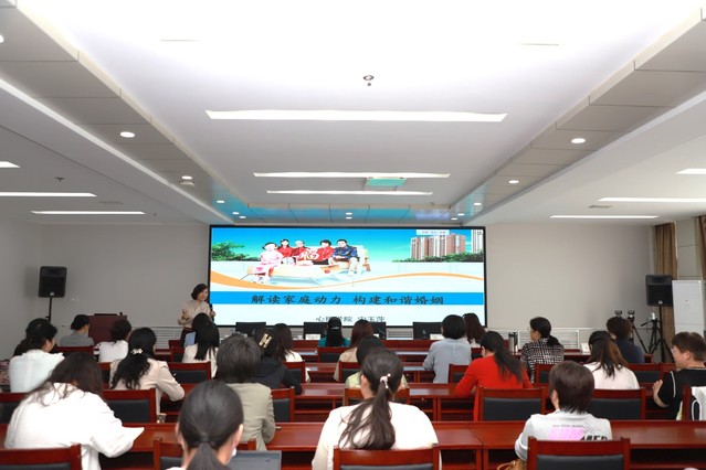 山东省家庭教育志愿服务总队专家、学校心理学院教授宋玉萍做了题为《解读家庭动力 构建和谐婚姻》的家庭教育专题讲座,从家庭的社会心理系统分析等四个方面进行了解读。