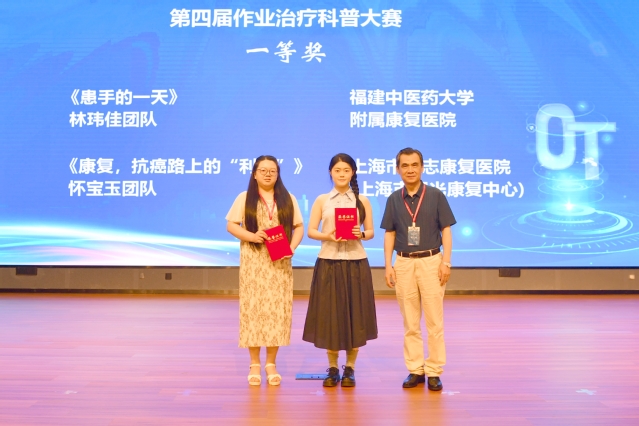 大会期间,举办了第九届“科莱瑞迪杯”低温矫形器制作技能大赛,第四届“绿柏杯”作业治疗创新创业大赛,第四届作业治疗科普大赛及第三届作业治疗短视频大赛。颁奖仪式上,管英俊教授、希拉·贝维斯教授、赵正全教授、闫彦宁教授为获奖选手代表颁奖。