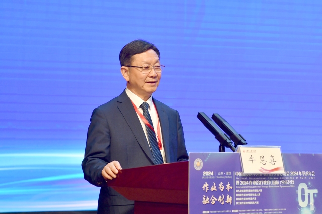 牛恩喜代表中国康复医学会对大会的召开表示祝贺并感谢本次组委会和承办方为会议筹办付出的心血。他指出,本次会议规模大、层次高,邀请了国内外众多的专家学者,传播先进理念,分享研究成果,进一步推动了我国作业治疗专业的高质量发展!