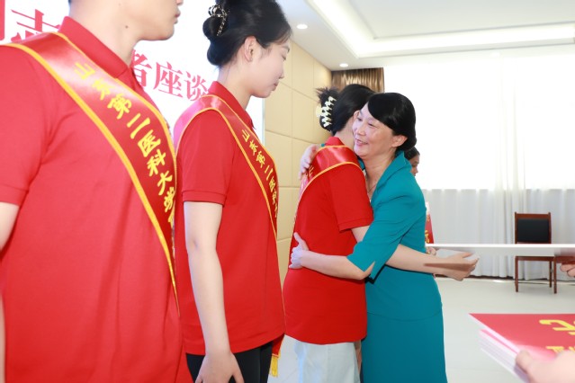 校团委负责人介绍了志愿者招募选拔情况及志愿者个人情况。教师代表为同学们送上了美好的祝福,期待同学们在各自的岗位上建功立业,为母校争光添彩。