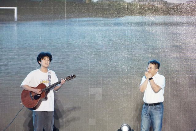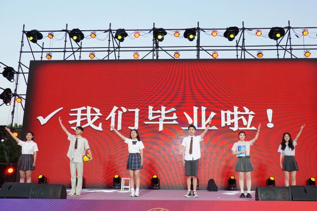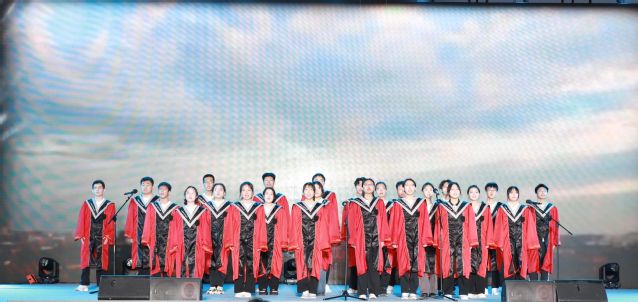 第二篇章“致成长”回忆大家的同窗时光、携手走过的日子。师生共同表演的口琴与吉他演奏《那些花儿》,旋律悠扬,小合唱《这世界那么多人》《如愿》唤起心底对青春岁月的感悟,《盛世国乐》展现了中华民族文化的恒久魅力,毕业祝福歌曲联唱《老男孩》《岁月神偷》《旅途》《凤凰花开的路口》让离别与不舍都化作音符融进旋律,在歌声中铭记这个花开的盛夏。