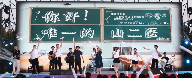 由8位离退休职工代表和学生代表共同演绎的师生合唱《一路生花》将晚会气氛推向高潮,薪火相传,砥砺奋进,一代又一代山二医人,弘扬“自强不息、锐意进取”的精神,从美丽的校园出发,带着希望与梦想,奔赴下一个山海。