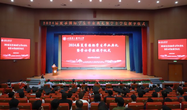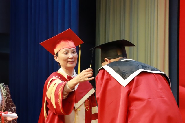 6月26日下午,学校2024届夏季国际学生毕业典礼暨学士学位授予仪式在浮烟山校区文体活动中心报告厅举行,校长管英俊,副校长卢国华、梁淑娟出席典礼。
