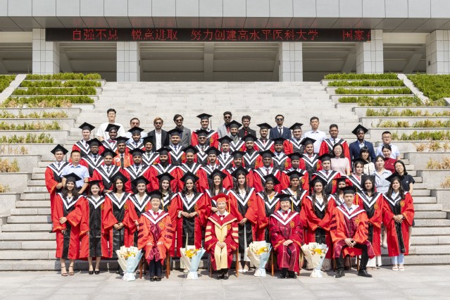 卢国华在致辞中向圆满完成学业的国际学生表示祝贺,希望同学们:一要志存高远,做人类命运共同体理念的践行者。秉持“求同存异、开放包容、文明互鉴”思想,把个人理想与世界发展、人类命运联系在一起,在实干中磨练技艺,书写国际青年的青春担当;二要精医重道,做病人期盼的苍生大医。传承“乐道 济世”校训,发扬“自强不息、锐意进取”大学精神,诚于品德、精于专业、勇于探索,为构建全球卫生健康共同体作出贡献;三要融通中外,做交流互鉴的友好使者。共同架起世界互通互联的友谊桥梁,做知华友华、荣校爱校的友好使者,让更多的青年人在多元文化交融互鉴中学习成长成才。