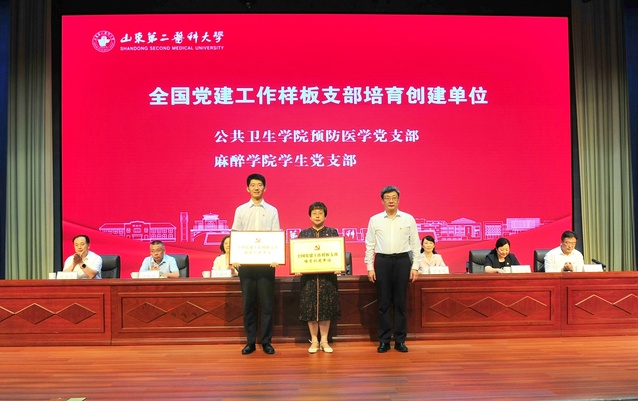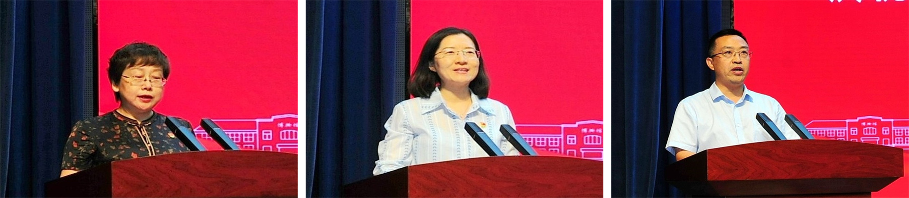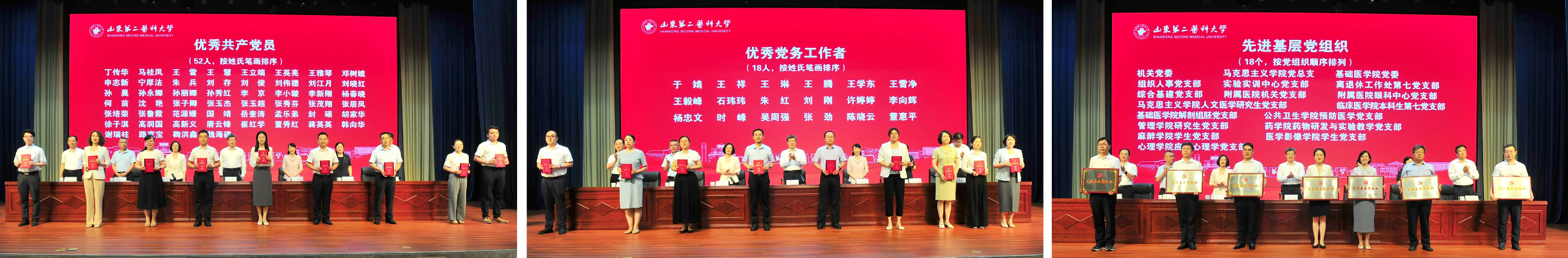 全国党建工作样板支部、公共卫生学院预防医学党支部书记王春平同志,山东党建工作标杆院系、基础医学院党委书记楚新艳同志,优秀共产党员代表岳奎涛同志依次发言。