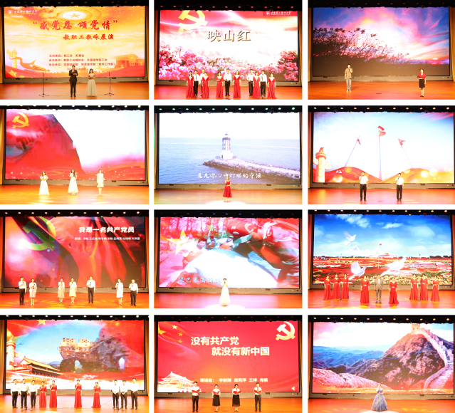 演出在小合唱《映山红》中拉开帷幕。来自全校各部门、学院的教职工们深情演绎了《如愿》《我的中国心》《为了谁》《国家》《我和我的祖国》等红色经典作品,演员们用洪亮的歌声,唱响了心中对党的热爱和对党的生日祝福。饱含深情的歌声深深感染了在场的观众,现场响起阵阵热烈的掌声,大家在享受视听盛宴的同时,接受了精神上的红色洗礼。