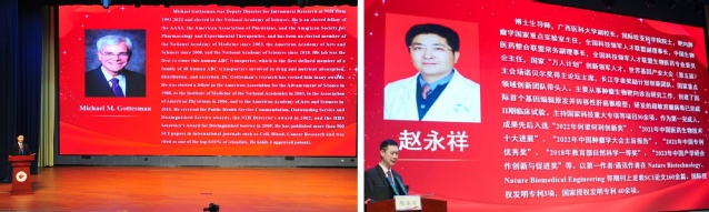 重庆医科大学校长黄爱龙教授、中国科学院上海有机化学研究所生命过程小分子调控全国重点实验室常务副主任丁克教授、Molecular Cancer杂志主编Christophe Nicot、奥地利维也纳医科大学Gergely Szakaes教授、美国科学院院士Michael M. Gottesman(线上)、广西医科大学副校长赵永祥教授(线上)、中国生理学会理事长王韵、中国解剖学会副理事长李和等专家从多角度对肿瘤和神经疾病的精准治疗的前沿问题进行了深入研讨,展示该领域最新的科研成果,引发与会师生的热烈讨论。