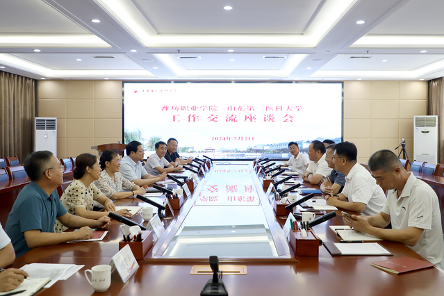 7月2日上午,潍坊职业学院党委委员、副院长付一明、任培华一行来必赢官网交流。副校长王承高参加座谈。